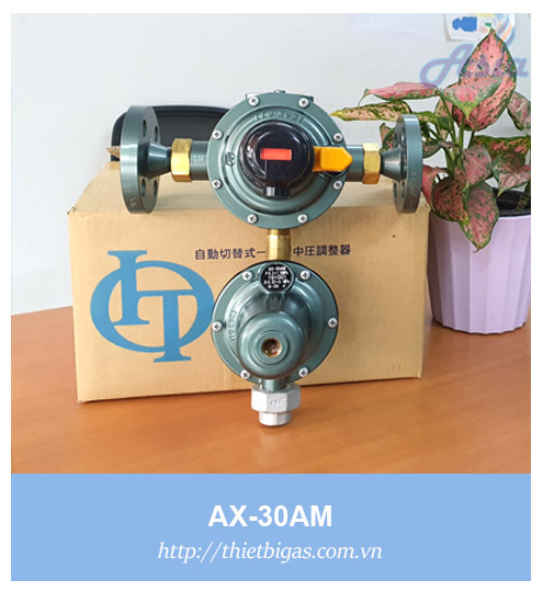 Bộ van đảo chiều AX-30AM do ITO KOKI Nhật Bản sản xuất. AX-30AM có chức năng đảo chiều 2 nhánh gas và giảm áp suất gas từ áp cao bình gas xuống áp suất 0.02 - 0.1 MPa (0.2 - 1 bar), lưu lượng 30kg/h, thường được lắp đặt cho các hệ thống gas sử dụng gas trung và thấp áp.